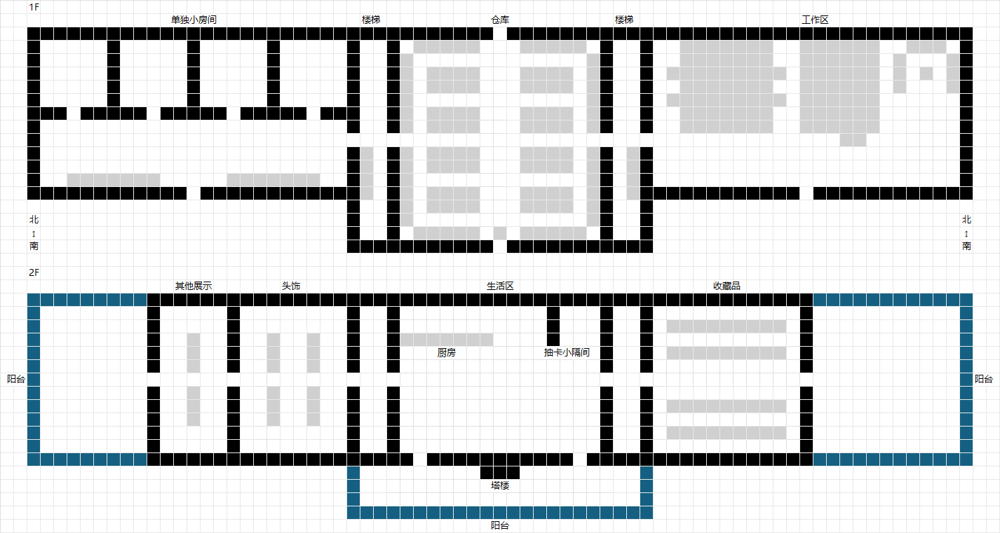 没有办法,我干脆直接打开 excel,调整成方格,开始自己画平面图。然而说来简单,我都没怎么见过真实住宅的平面图是什么样子,应该如何设计比较合理。我开始在脑子里艰难地设想我的需求。